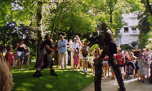 Sa première prestation fut “Bouffon” à la cour du Comte de Sir Adelin de Madras entraînant avec lui, six compagnons à travers les contrées de Provins, Levallois, Saclay, Dourdan ...